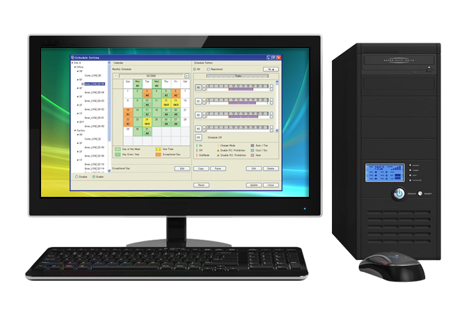 - In addition to air conditioning precision control function, central remote control, electricity charge calculation, schedule management, and energy saving functions are strengthened and building manager and owner needs are met.